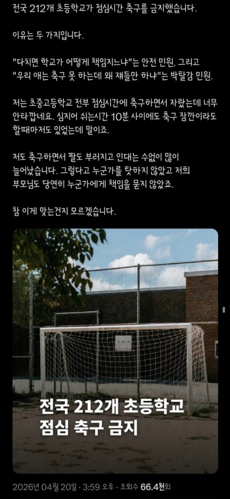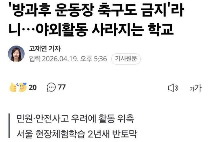 전국 212개 초등학교, 점심시간 축구 금지