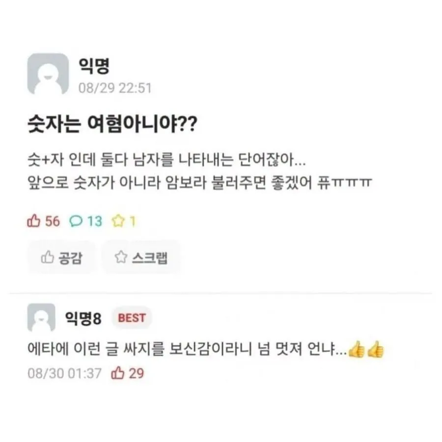 에타에 새롭게 등재된 양성불평등 단어 > 유머게시판