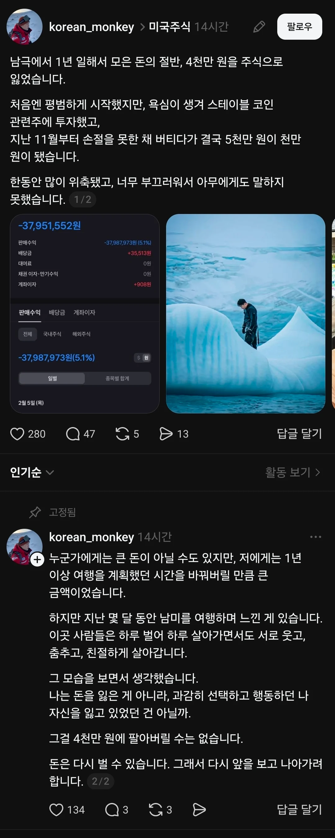남극에서 열일해서 번 돈 날린 사람