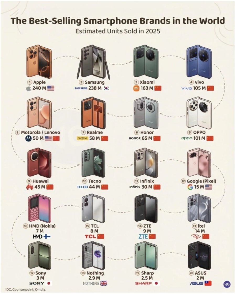 2025년 전세계 전체 스마트폰 브랜드 판매량 순위 > 유머게시판